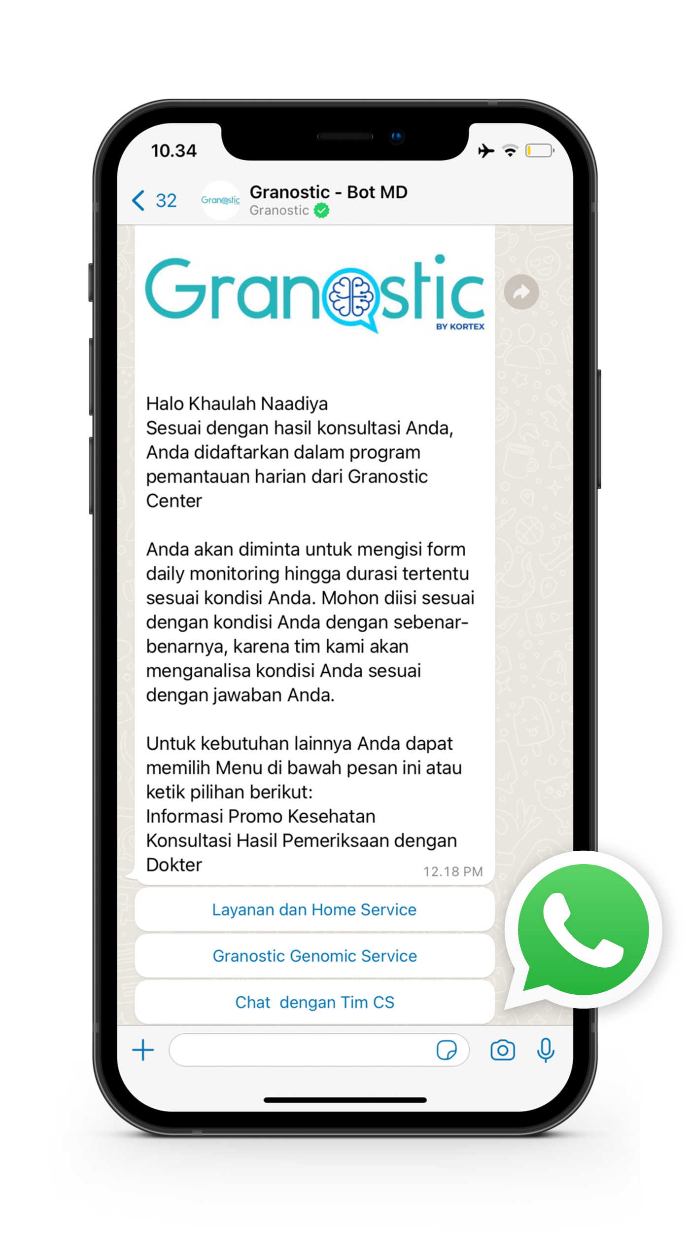 Furthermore, patients' enquiries can be managed directly through WhatsApp, giving patients the convenience of finding out about other services at Granostic Center and communicating with the clinic through the messaging app that they are most familiar with.