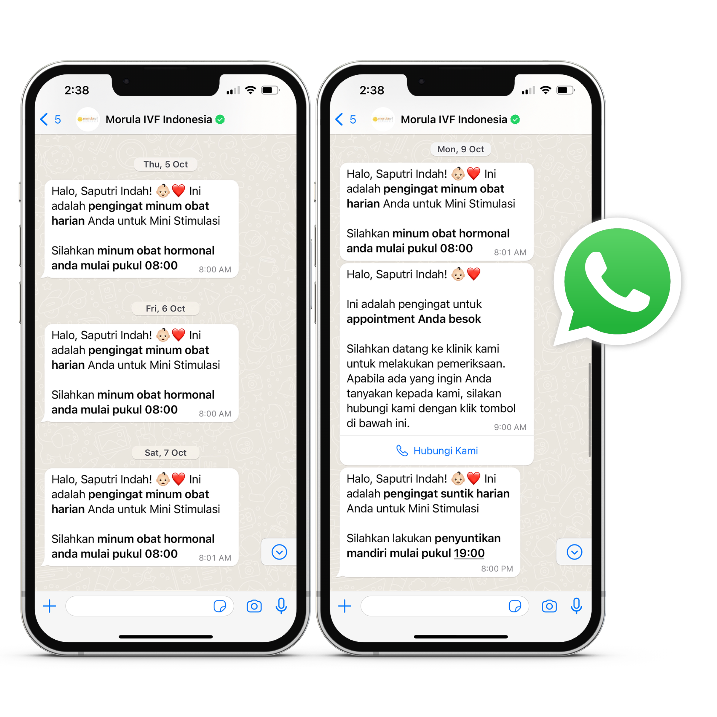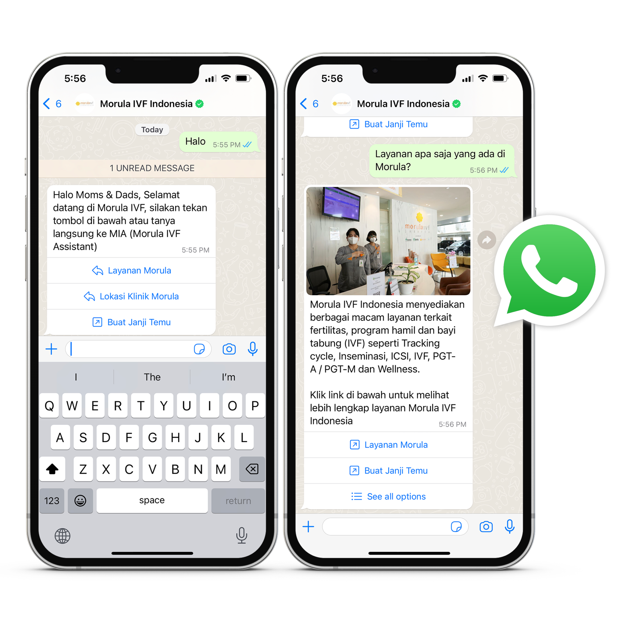Morula IVF Jakarta announces the launch of the Bot MD Care A.I. powered WhatsApp patient engagement platform to automate patient education and reminders for their IVF patients. The platform allows patients to easily track their menstrual cycles, IVF injection dosages and times, medication intake and follow-up visit schedules through a convenient WhatsApp interface.