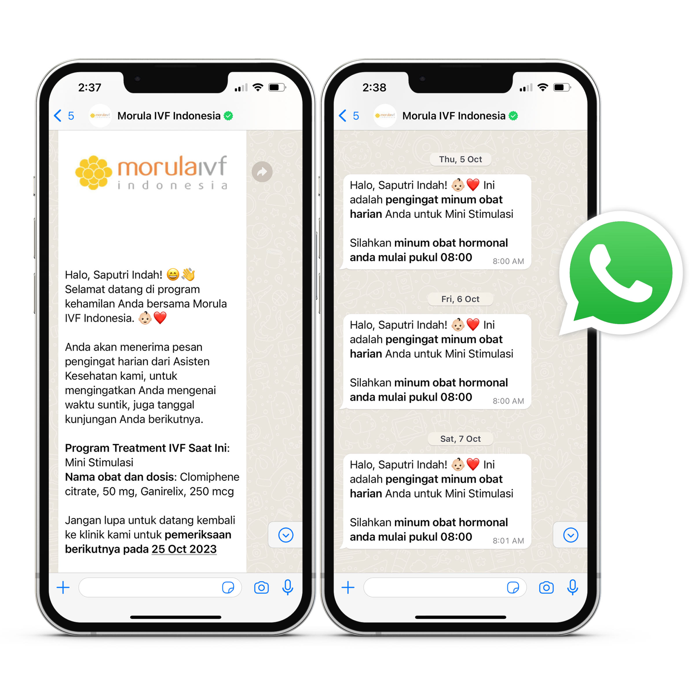 Patients who are undergoing IVF treatments (such as the Mini Stimulation Program, Short and Long Protocols, Frozen Embryo and Embryo Transfer Programs) will be enrolled into the Morula Bot MD Care platform and will receive automated WhatsApp reminders relating to their IVF treatment.