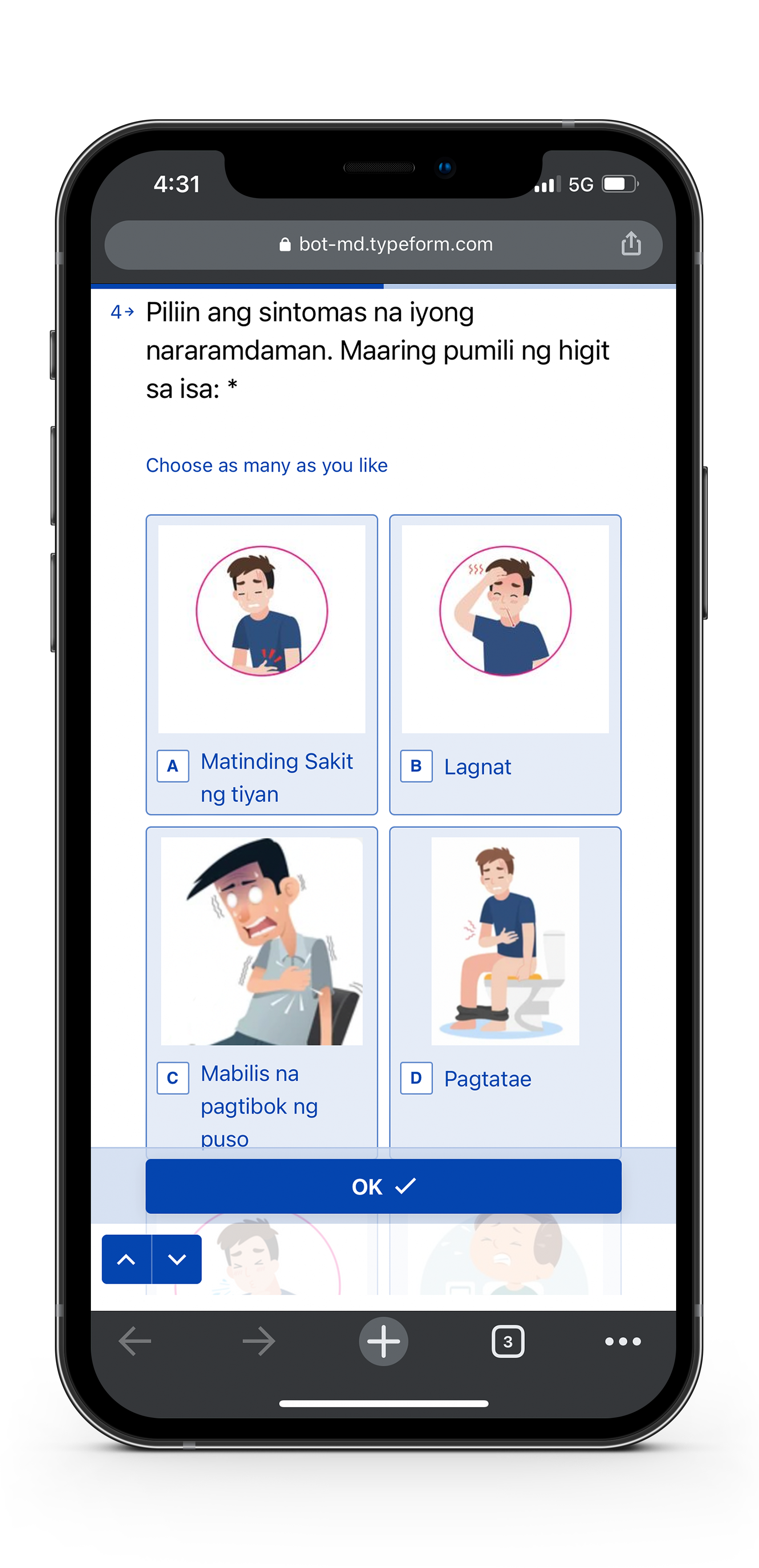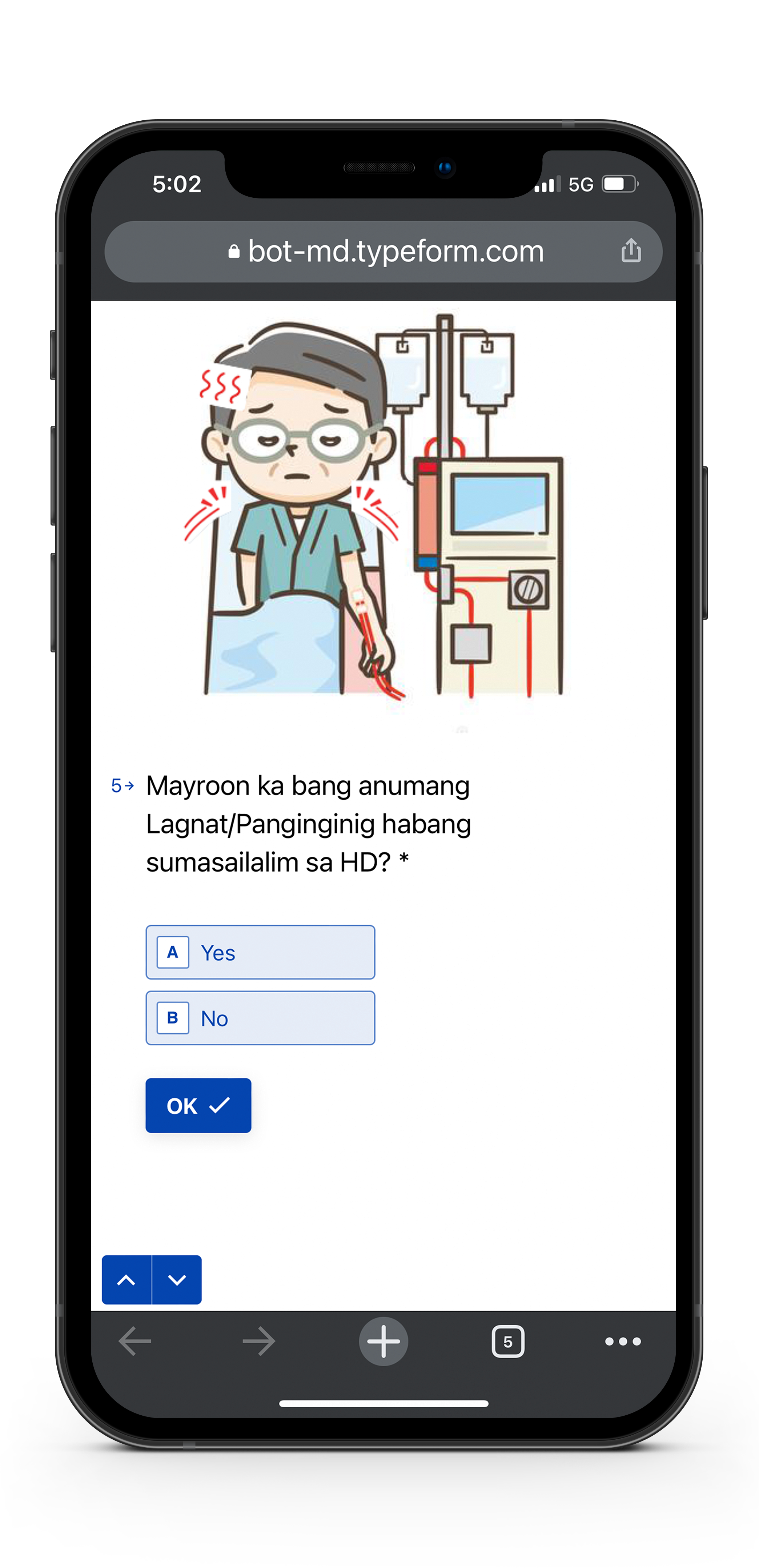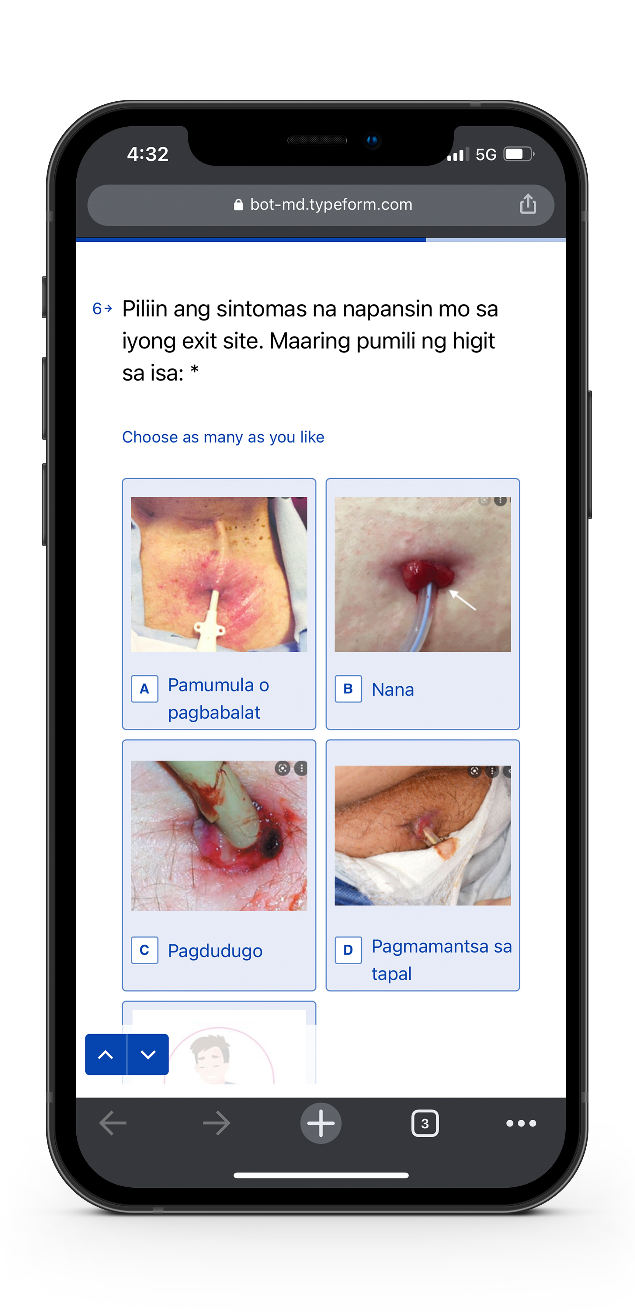 Bot MD Care makes it easy for kidney patients or their caregivers to report their symptoms and conditions through simple monitoring forms that are automatically sent to them through Viber, a widely used consumer messaging chat app in the Philippines. Patients can also submit images of their clinical condition including their dialysis access sites so that their clinical care team can easily monitor them for signs of infection.