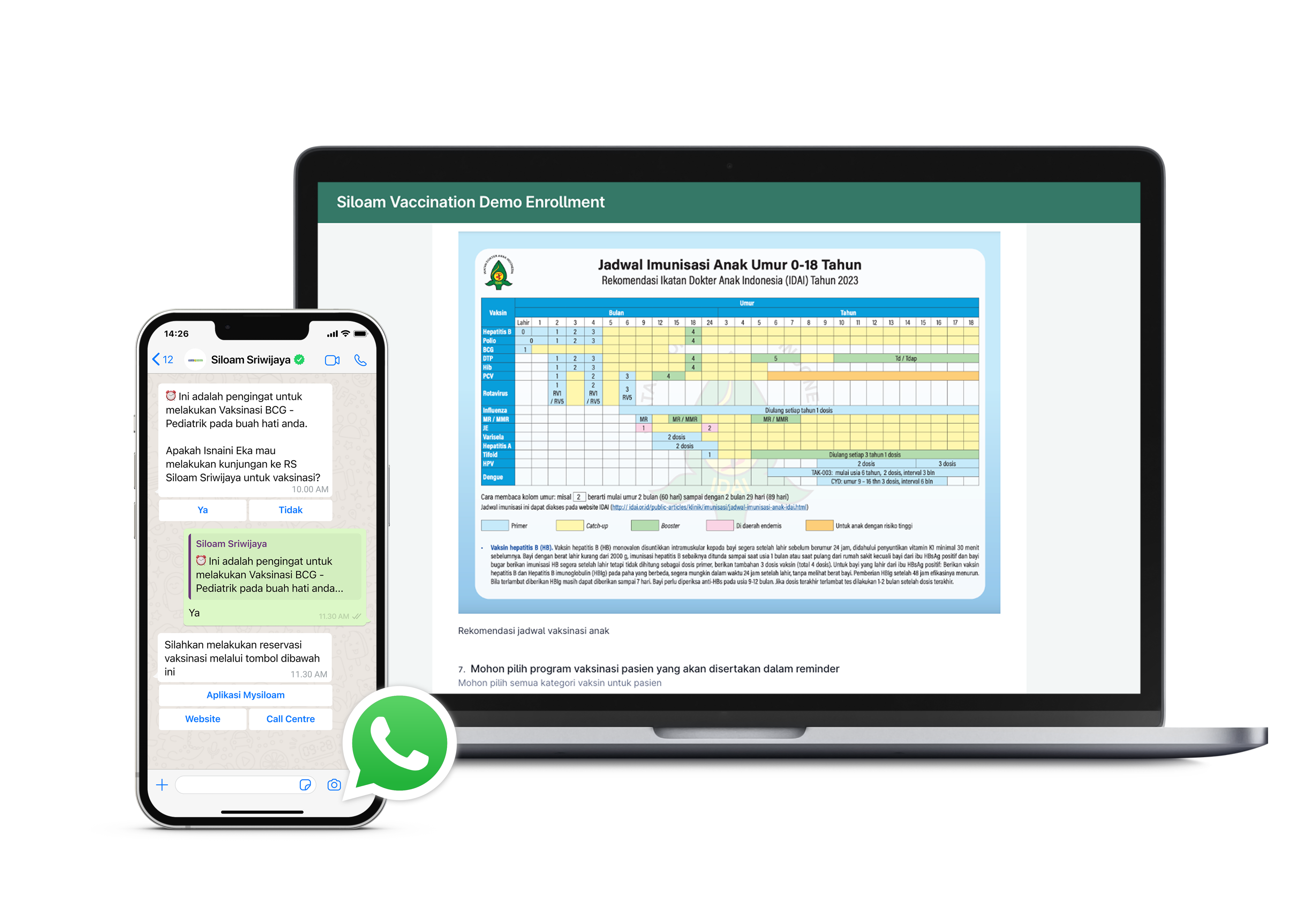 Parents with newborns delivered at Siloam Sriwijaya will receive automated WhatsApp reminders from the Hospital, without having to download another app. These reminders will inform parents of their child's required vaccination schedule from birth until they are 18 years old.